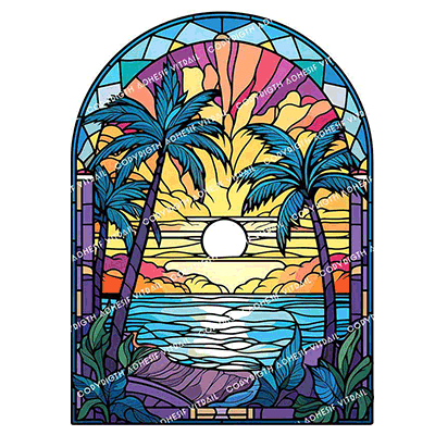 Créez une atmosphère lumineuse, apaisante et dépaysante grâce à cet adhésif vitrail autocollant d’inspiration bord de mer, idéal pour apporter une touche tropicale élégante à votre intérieur.