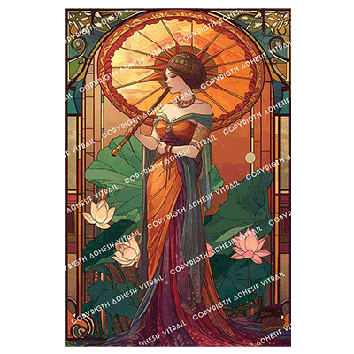 Ce magnifique adhésif vitrail autocollant d’inspiration Art Nouveau invite à un voyage dans le temps, mêlant élégance intemporelle et raffinement décoratif.